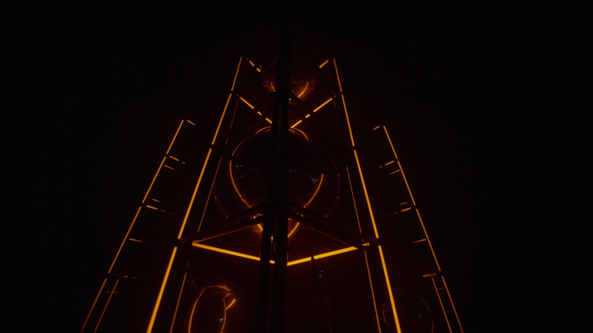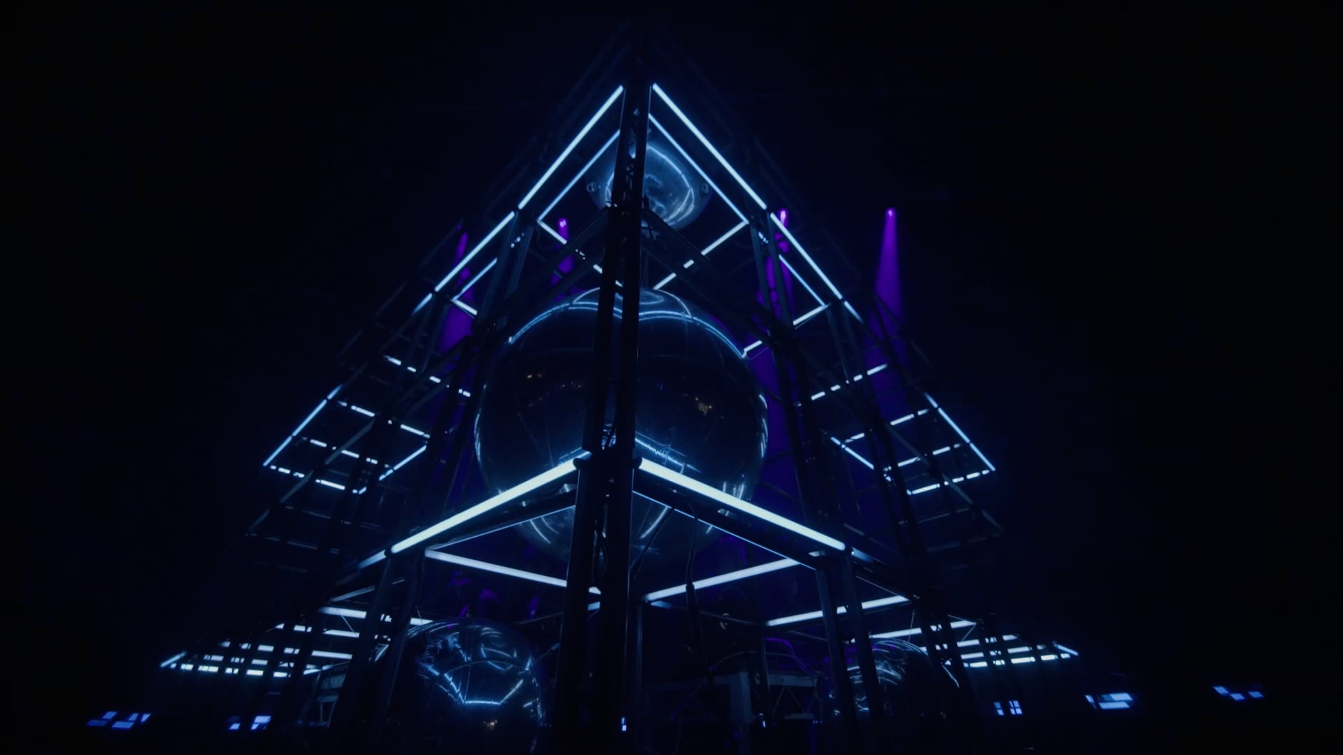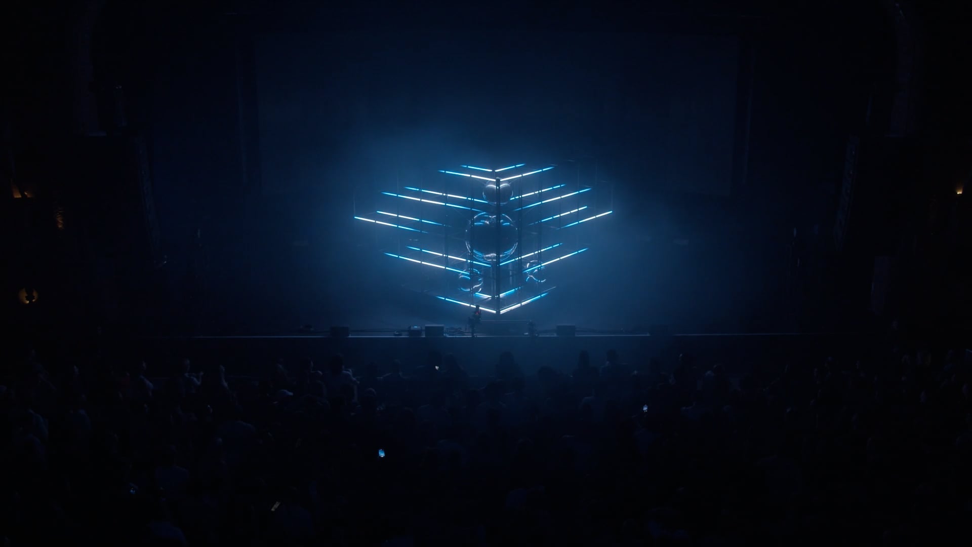 The performance combined new music by Sleep D with CYMETRIC, a bespoke large-scale installation designed by Reelize.Studio. Intricately programmed and triggered in real time, the structure responds directly to the duo’s driving rhythms, hypnotic basslines, and dense fields of echo, translating sound into evolving geometric light. Both audio(Sleep D) and visual(Reelize.Studio) performers occupy the stage together behind the structure, collectively shaping the work as it unfolds. CYMETRIC functions as a responsive instrument — a live, immersive system where sound and light co-evolve through shared sensory control.